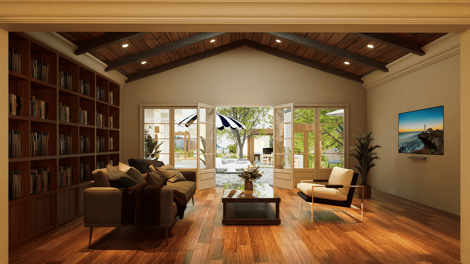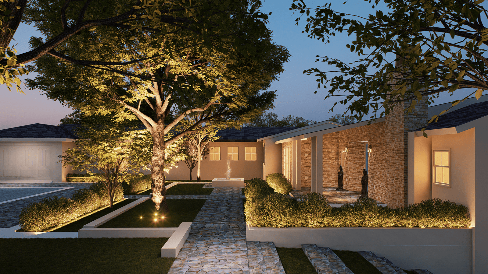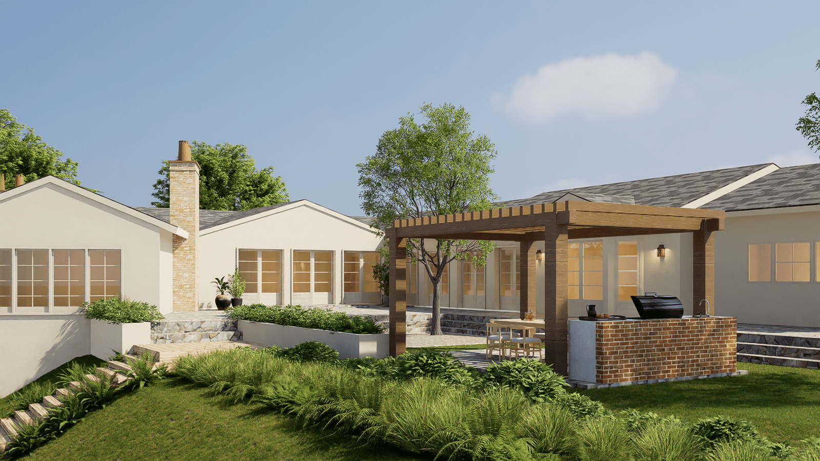 A one-acre residential site presented through measured perspectives that clarify proportion, light, and the relationship between house and landscape, commissioned after completion to document the design for the architect’s portfolio and to supply clear, shareable assets for social media.